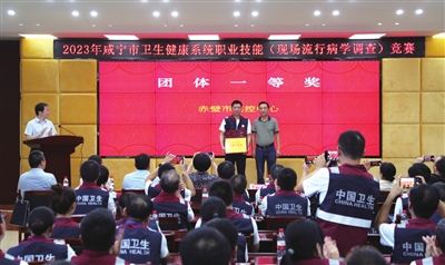 本报讯(记者 鲁芳 通讯员 汪阳 姚国薇)9月19日,由市卫生健康委员会、市人力资源和社会保障局、市总工会、市妇女联合会联合主办,市疾控中心承办的“咸宁市2023年卫生健康系统职业技能(现场流行病学调查)竞赛”圆满落幕。市人力资源和社会保障局副局长廖白龙、市总工会副主席罗青松、市妇联副主席王左涛、市卫健委副主任钟平等出席此次大赛颁奖仪式,并为获奖单位及个人颁奖。