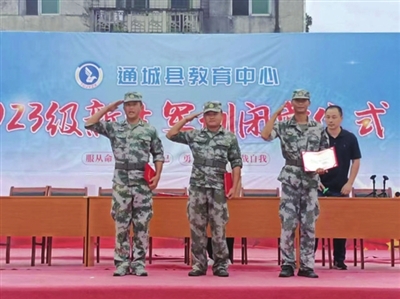 县教育中心负责人张添翼表示,高一新生要以军训为起点,向下扎根、向上生长,以坚定的理想信念牵引奋斗青春,以深厚的家国情怀标注青春底色,奋力书写出无愧于伟大时代和自己的青春篇章。