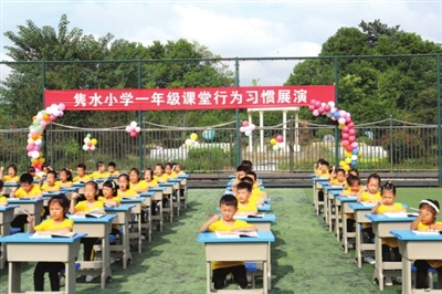 本报讯(通讯员 黄二甫) 9月15日,通城隽水小学举行一年级新生课堂行为习惯展演活动。