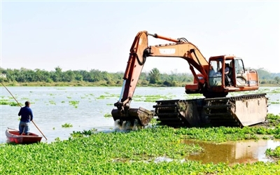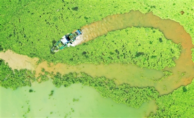 10月17日,咸安区向阳湖奶牛场组织机械和人力,在淦河窑咀段清理水生植物。据了解,近年来,当地坚持绿色发展理念,建立县、乡、村三级河长责任体系,常态化对境内河湖、主干河道、围垸内沟渠等进行常态化治理,以“河长制”促进“河长治”,描绘出一幅“水清、岸绿、景美”的生态画卷。