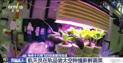 进入空间站阶段以来,航天员在太空种植蔬果所使用的“太空菜园”装置,是由中国航天员科研训练中心新设计的第二代空间植物栽培装置,它采用模块化、开放式的结构,可以更好地开展在轨失重条件下的植物栽培试验。