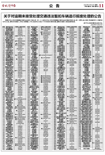 关于对逾期未接受处理交通违法暂扣车辆进行报废处理的公告