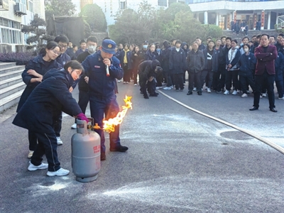 演练现场,消防指战员们向同学们讲解了校园典型火灾案例,从防、灭、逃三方面向师生讲解了日常消防安全常识以及灭火器材的使用方法、注意事项,以及如何预防火灾、如何查找火灾隐患,并现场指导师生进行实际操作。“如果发现楼内发生火灾,不要乱跑、不能慌张、冷静地探明着火方位,在火势未蔓延前,朝逆风方向快速离开,拨打119要说清楚具体位置……”消防员真诚的告诫,赢得了阵阵掌声。