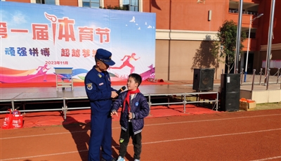 随后,咸宁高新区消防救援大队现场举行消防安全知识讲座,对火灾种类、火灾致命的原因、常见火灾的应急处理方式等消防安全基本常识进行讲解,现场演示灭火器的使用方法,并进行互动,提升师生消防安全技能。