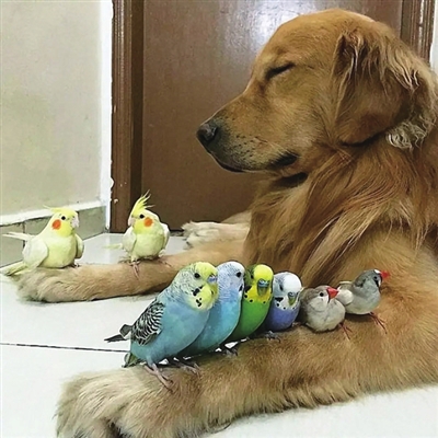 金毛:“带娃累,带别人的娃 更累。” (来源:新浪微博)