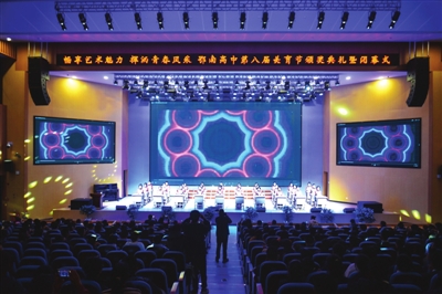 气势磅礴的大合唱、动感活力的课桌舞、深情款款的女声独唱、余音绕梁的男高音、激情澎湃的乐队表演……11月22日晚上的鄂南高中被音乐包围着,作为该校第八届美育节决赛暨闭幕式,现场气氛欢快、愉悦,吸引千余名师生见证了此次艺术盛宴。 本届美育节以“畅享艺术魅力 挥洒青春风采”为主题,开展了系列艺术活动。前期分别举行了“手绘蓝图”绘画比赛、高一年级“歌声嘹亮 众星璀璨”合唱比赛、高二年级“嗨向未来”课桌舞比赛,当天晚上合唱、课桌舞获奖节目代表进行展演,并现场举行“星光闪耀”歌唱比赛决赛。