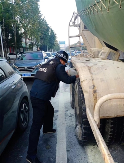 当天早晨7点40分,正在岗位值勤的饶平平注意到一个异常现象,一辆驶经银行门口路段的货车冒出浓浓黑烟,再仔细一瞧,大货车后方轮胎竟然已经着火。