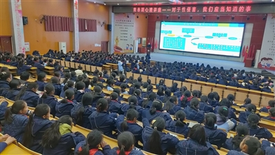 本报讯(记者原子 赵忠志)面对性侵害,我们该怎么办?11月30日上午10时,咸宁市浮山学校礼堂座无虚席,该校6-7年级的460余名女学生,正在认真聆听咸宁市咸安区人民检察院未检检察官谢云龙为她们送上的专属“女生课堂”:青春期心理讲座——对于性侵害,我们应当知道的事。