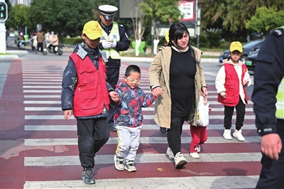 看到两个小朋友跑跑跳跳来到斑马线,小记者施尧杰在交警的提醒下,走上前说:“你们过马路、走斑马线不要嬉戏打闹,这样很危险。”行人家长向他微笑示意,交警赞扬他条理清晰。看着行人赞许的目光,小记者们也纷纷出击,或是劝导,或是提醒,或是搀扶老人过马路,大家乐在其中。