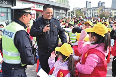 第一环节的体验轻松愉悦。紧接着,为配合“122全国交通安全日”活动,小手拉大手,促进交通安全知识宣传,交警为小记者们颁发交通“形象小天使”的奖状,小记者们同时面向市民发出文明出行的倡议。仪式感的颁奖,小记者们倍感神圣,他们集体倡议,声音洪亮,严肃认真,受到现场市民的肯定。