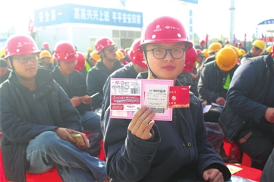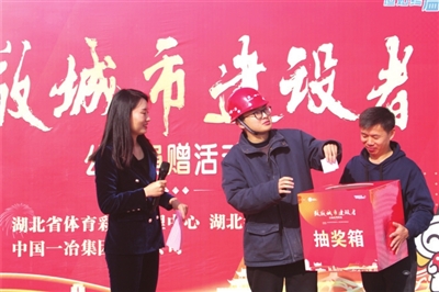 “快看,我这张中了20元”“我这张也有5元……”此次捐赠仪式还穿插了体彩沙龙和现场抽奖环节,让参与活动的城市建设者们现场感受了”顶呱刮”即开型体育彩票以及3轮现场抽奖活动的快乐。当一等奖获得者上台将一部华为手机高高举起时,整个活动现场更是喝彩声一片,让整个活动达到高潮。活动期间,湖北体彩咸宁分中心工作人员还贴心地为每位城市建设者送上一份温暖、一份彩头、一份希望和一份关怀——一件棉衣和一张大乐透彩票,受到了现场工友们的热烈欢迎。