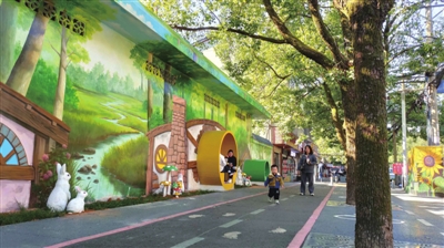 12月7日,记者在市区潜山路看到,改造后的人行步道焕然一新,沿路栩栩如生的墙体彩绘为街道增添不少童话色彩,吸引众多市民打卡拍照,城市颜值进一步提升。 (记者 赵忠志)