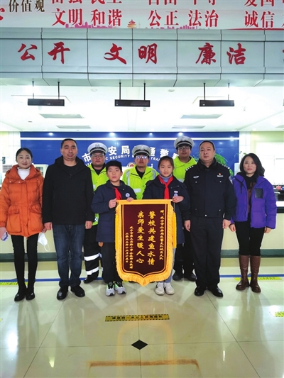 “感谢您们辛苦的付出……”12月15日上午,咸宁市第三实验小学校长毛泉带领学校行政及少先队员代表来到咸宁市公安局交警支队城区大队温泉中队,为这里的交警送上一面写有“警校共建鱼水情,亲师爱生暖人心”的锦旗,以此表达全校师生对该中队民辅警常年风雨无阻坚守岗位、维护校园周边交通秩序,保障了学生上下学期间交通安全、有序、畅通的感激之情。