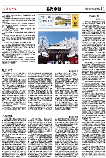 望风发呆,为心而写;思路阻塞,搁笔操琴。这,应该是属于她的生活方式,这样的生活方式,充溢着哲理般的恬静和散淡。她就这样恬静散淡地活着,活出了属于自己的缕缕琴音,这美妙的琴音,在曾经的古街巷里,在心灵的故园里,不绝如缕,悠悠潆洄。