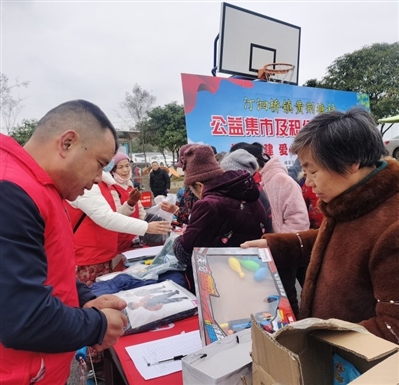当天,在“公益集市”上,只要参加公益服务满15个志愿积分以上的志愿者就可以凭借志愿积分兑换自己的心仪物品、特色服务和商铺体验券等等。积分兑换区域有大米、毛衣、毛毯、抽纸、玩具、书籍、洗衣液等物资和爱心商户提供的爱心公益卡,村民们可以按照兑换规则来兑换。