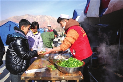 甘肃省临夏州积石山县6.2级地震发生后,各方力量驰援一线,中央救灾物资以及社会捐赠物资持续不断运抵,帮助受灾群众渡过难关;当地紧急调拨救灾物资,协调救援保障力量,妥善安置受灾群众。救援人员、医务人员、志愿者同受灾群众一道,相互帮助鼓励,将温情传递到安置点的每一个角落。 (据新华社)