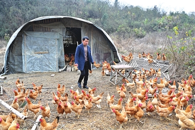 36岁的吴超儿时因意外导致左手掌缺失,被认定为四 级残疾。身体的残缺并没有将他打垮,他凭借坚强的意志、乐 观的心态找到一条谋生之路——中药养鸡,规模约3000只鸡的 养鸡场在他的打理下井井有条。