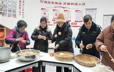 “我负责买菜、肉和饺子皮。”张桃英说,居民吴秀珍负责调馅料,张杰负责提供炉子和锅、汪作启负责提供碗筷……一共12个居民分工协作,共同操办“饺子宴”。当天上午,洗菜、切菜、调料、拌馅、包饺子……12个居民一边包饺子,一边分享彼此的生活故事和快乐。欢声笑语中一个个白白胖胖的饺子被一双双灵巧的双手捏出,旁边炉火旺烧,开水翻滚,幸福和谐的烟火气呈现眼前。