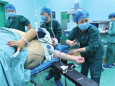 为了冯女士的手术能够顺利进行,该院产科与麻醉科充分讨论了手术方案,决定在超声引导下选择穿刺点,由麻醉师艾麟、刘力、沈勇、甘清一同进行麻醉。