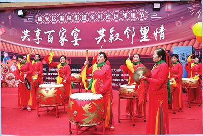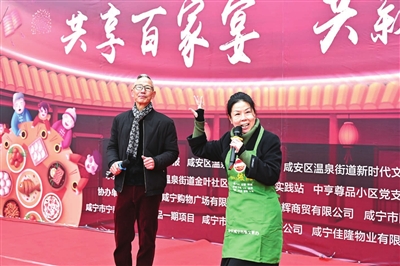 1月16日上午,咸安区温泉街道金叶社区中亨尊品小区广场上,200多位居民聚在一起,共品百家宴、共叙邻里情。现场气氛热烈,邻里深情让人动容。