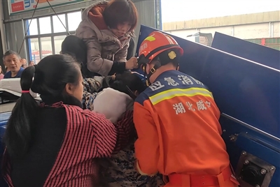 本报讯(记者陈志茹 特约记者朱燕林 通讯员李小龙)通山县一快递工作人员在分拣快递包裹时,右手不慎被卡在分拣机。后经16名消防救援人员的紧急救援,该女工成功脱险。