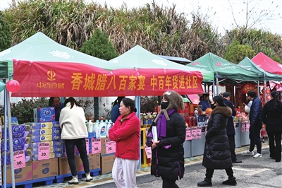 5升毛铺苦荞酒大容量装、毛铺核心产品金荞、黑荞、紫荞酒、中国劲酒35度贺岁版……活动赞助商咸宁市劲辉商贸有限公司在金叶社区中亨尊品小区百家宴展销台展出了一系列的经典产品,亲民实惠的价格点燃了居民的消费热情,大家纷纷驻足参观、品尝和购买。