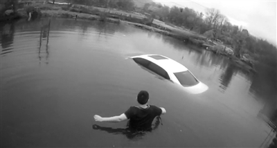 冬日池塘里的水寒冷刺骨,小雨淅淅沥沥下个不停,给救援增加了难度。但王浪钦没有丝毫犹豫,奋力靠近落水车辆,打开车门,通过喊话、摸索、观察了解车内情况,所幸的是车内没有被困人员,众人这才松了一口气。