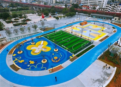 1月22日,咸宁桂花广场运动公园内,工人正抓紧项目收尾,公园预计1月底竣工。据悉,该公园占地13385.59平方米,采用大片蓝、黄、粉等鲜亮活泼的色彩,充分融入地方桂花文化,是集入口形象区、儿童游乐区、球类运动区、板类运动区、市民休闲活动区等功能于一体的全年龄段友好型运动公园。 (记者 方达星)