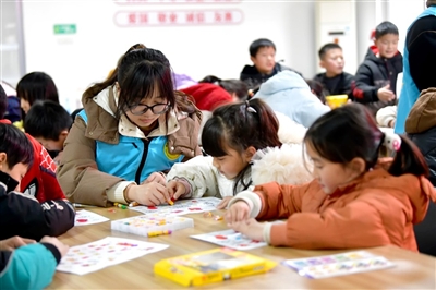 1月20日,咸安永安街道东门社区,孩子们在启善社工的带领下进行彩绘。