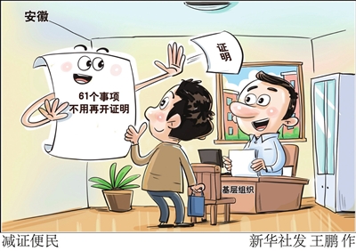 为改变这些现象,安徽省民政厅多措并举,持续推进村(社区)减负增效,全省累计清理村(社区)不应出具的居民身份信息证明、出生证明、居民养犬证明等证明事项61项,各市也制定了不应出具证明事项清单,村(社区)出具证明的类型、数量进一步压减。 (据新华网)