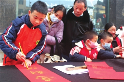 龙腾甲辰,翰墨飘香。为弘扬中华优秀传统文化,迎接龙年春节的到来,展示教联体书法教育成效,加强学校和社区共建,1月27日上午,咸宁市实验小学教联体携手咸宁市书法家协会在温泉希沃尔玛广场共同举办“迎新春 送春联”进社区活动,为过往居民免费送上年味十足的新春祝福。