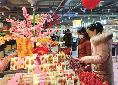 春节临近,年味浓郁。2月1日,记者走访咸宁城区多家超市、集贸市场和水果市场看到,许 多市民忙着置办年货,处处洋溢节日气氛。 (记者 葛利利 王奇峰) ●6版