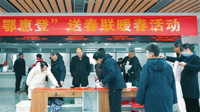 这是咸安区不动产登记中心在新春佳节来临之际开展的“鄂惠登”送春联暖春活动。“真是太温馨了,春节要来了,原本打算去买春联,没想到在这里领到了,让人感受到浓浓的年味。”大家拿着散发着清新墨香的春联和“福”字,个个喜上眉梢,纷纷表示感谢。