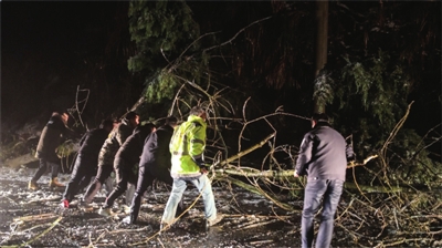 2月7日凌晨1时许,市公安局民警驱车赶回咸宁城区途中,在044县道孔家边路段发现一棵大树横倒在路面上,阻碍来往车辆正常通行。一行人随即下车联合过往司机合力将大树搬走,清理路面枯枝,保障道路畅通。 (记者 毛亚轩 刘震)