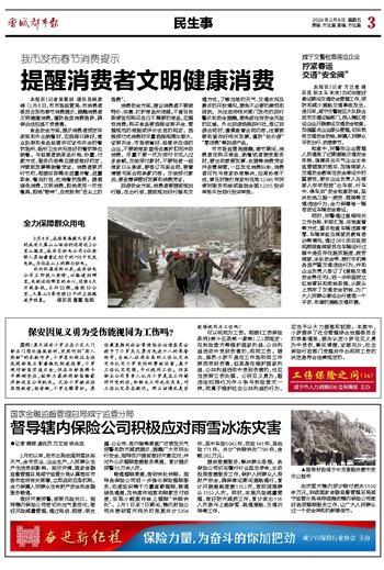 督导辖内保险公司积极应对雨雪冰冻灾害
