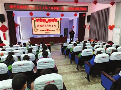 本报讯 (通讯员 陈浩高鑫) 为了更好地推动素质教育,辅助学生学习科学的心理调节方法。2月28日下午,咸宁市第四小学特邀国家二级心理咨询师、咸宁市心理学会注册讲师操良红教授到校开展“开学第一课”心理健康课程讲座。