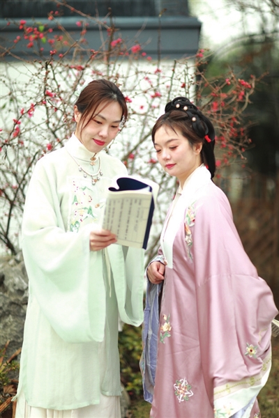 当天,人行咸宁分行女职工们纷纷换上古典、端庄的汉装,从岗位奋战的“女汉子”变成楚楚动人、古朴大方的“女神”。大家三两成行,有的手持油纸伞、蒲扇,漫步花间小径,谈笑风生;有的怀抱诗书,行走在江南水桥兰亭之间,吟诗作赋;在优雅的古典音乐旋律中,共同演绎一场江南古风汉韵盛宴……