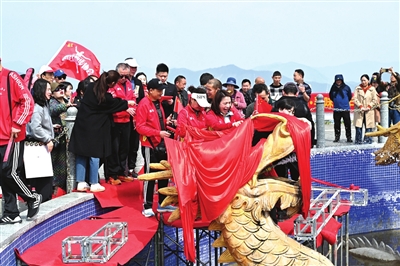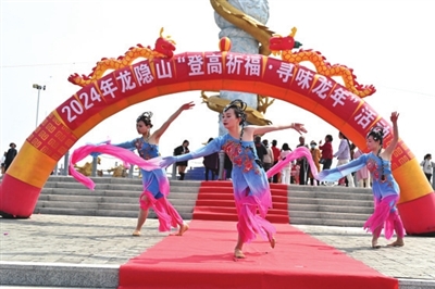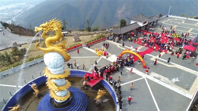 当日上午10时许,在热闹的歌舞声中,游客们陆续登上九龙鼎广场。现场设置了“祈愿墙”、寻龙得宝、姻缘一线牵等丰富多彩的趣味活动,游客们抽取新年上上签、写心愿龙鳞卡开启新年好兆头。
