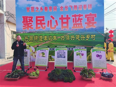 甘蓝新品种展示环节,来自金润农业的工作人员向村民们重点展示推广了皱叶菜、水果甘蓝、芣蓝、羽衣甘蓝、紫甘蓝等新品种,并表示会提供技术指导,助力村民们致富增收。