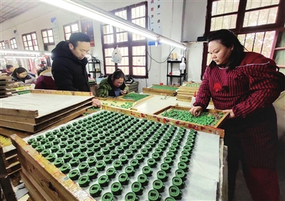赤壁市晶友工艺品有限公司2023年11月落户柳山村,主要从事漆器工艺品制造,目前已带动当地23名妇女实现“家门口就业”。