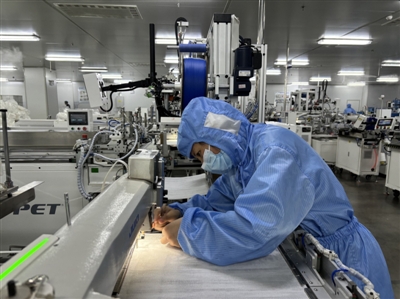 3月26日,咸宁高新区金士达医疗(咸宁)有限公司车间,工人们正在生产线上忙碌。