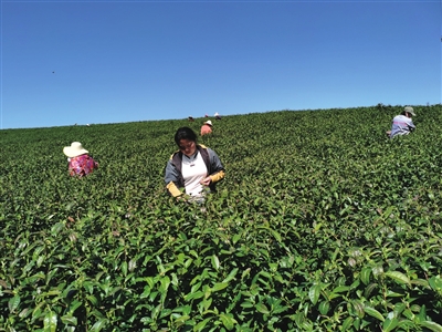 “我们每天每人可采摘茶叶7至8斤,按每斤20元左右的计算,一天下来可收入150元左右……”村民张嫂一边摘茶,一边乐呵呵地说。