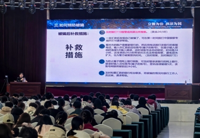 3月28日下午,市公安局温泉分局三号桥派出所民警走进咸宁职业技术学院, 通过结合案件实例、受骗人现身说法等方式,为在校师生送上一堂“反诈防骗,青春同行”反电信网络诈骗专题讲座,进一步增强在校师生的防范意识,提高反诈防骗能力,筑牢高校反诈防骗防护网,守护校园师生“钱袋子”。