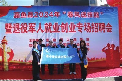 启动仪式结束后,该局“嘉小税”流动办税小分队走进嘉鱼县2024年“春风送技能”暨退役军人就业创业专场招聘会,设立起税费政策咨询驿站,以退役军人创业就业税费优惠政策以及群众最为关切的两保政策为核心,面向招聘企业、招聘人员以及群众进行详细的政策解读,并发放《退役军人和重点群体创业就业税费优惠政策》宣传手册,解答涉税疑问。