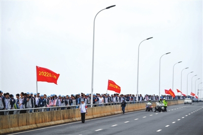 一路上,同学们精神抖擞,步伐整齐,歌声、口号声此起彼伏。绵延的队伍犹如一条长龙,成为咸宁大道、书台街、官埠大道一道靓丽的风景线。行进了一个又一个三公里、五公里,同学们良好的精神风貌让沿途市民纷纷驻足拍照,称赞鄂高学子的奋发上进。