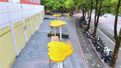 彩色地面上绘制着清晰的标线,云朵形状的休憩亭和花箱式座椅组成休闲空间,路边非机动车整齐停放……2023年以来,随着市区潜山路改造项目的进行,市第五小学街角花园建设完工,点“靓”1400余名师生的上学路。(记者 周萱 黄兰芬)