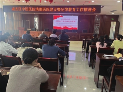 本报讯(记者 夏咸芳 通讯员 王莹)为进一步推进清廉医院建设,加强纪律教育,提升医疗服务质量和效率,结合医药领域腐败问题集中整治和不正之风集中整治工作中暴露的问题,4月15日,咸安区中医医院召开清廉医院建设暨2024年纪律教育工作推进会,传达学习湖北省清廉医院建设领导小组印发的《关于印发<湖北省 2024 年清廉医院建设工作方案>的通知》和中共湖北省委办公厅印发《关于深化党员干部纪律教育工作的意见》的通知,部署安排2024年清廉医院建设和党建目标任务。该院领导班子成员、各党支部书记、各职能部门负责人临床医技科室主任及正、副护士长和其他工作相关人员参会。