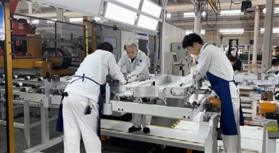 4月18日,位于咸安经济开发区的湖北敏能汽车零部件有限公司车间一片繁忙,工人们正在生产线上检查电池盒的焊道。