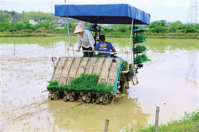4月18日,咸安区浮山街道白鹤村,咸安区润田种植专业合作社的农机手正在开展早稻插秧作业。连日来,咸安区多地组织插秧机投入早稻生产一线,铆足干劲按下春插“快进键”,为全年粮食生产赢得主动权。(记者 王奇峰 通讯员 鲁鹏 袁佳丽 赵咏)