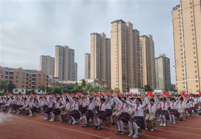| 4月23日,咸宁实验外国语学校举行第二十四届青少年爱国主义读书活动暨第十届读书节,小学部三到六年级3000多名学生齐诵《你是人间四月天》。今年时值建校十周年,该校还将举行图书淘宝市场、小古文比赛、现场阅读比赛、现场背诵比赛、诗词大赛等系列读书活动,点燃读书激情,共建书香校园。 (记者熊大平 通讯员陈霞) |